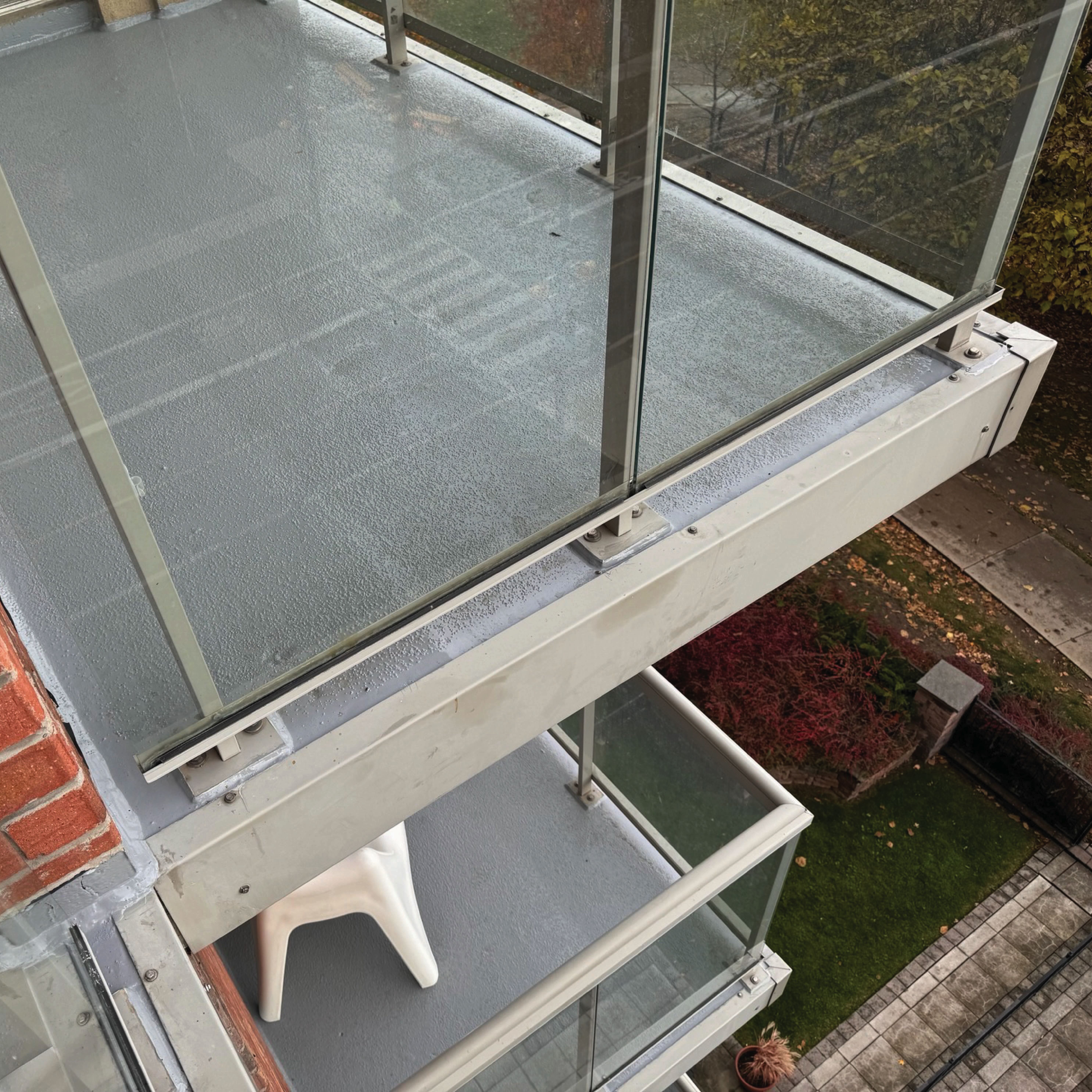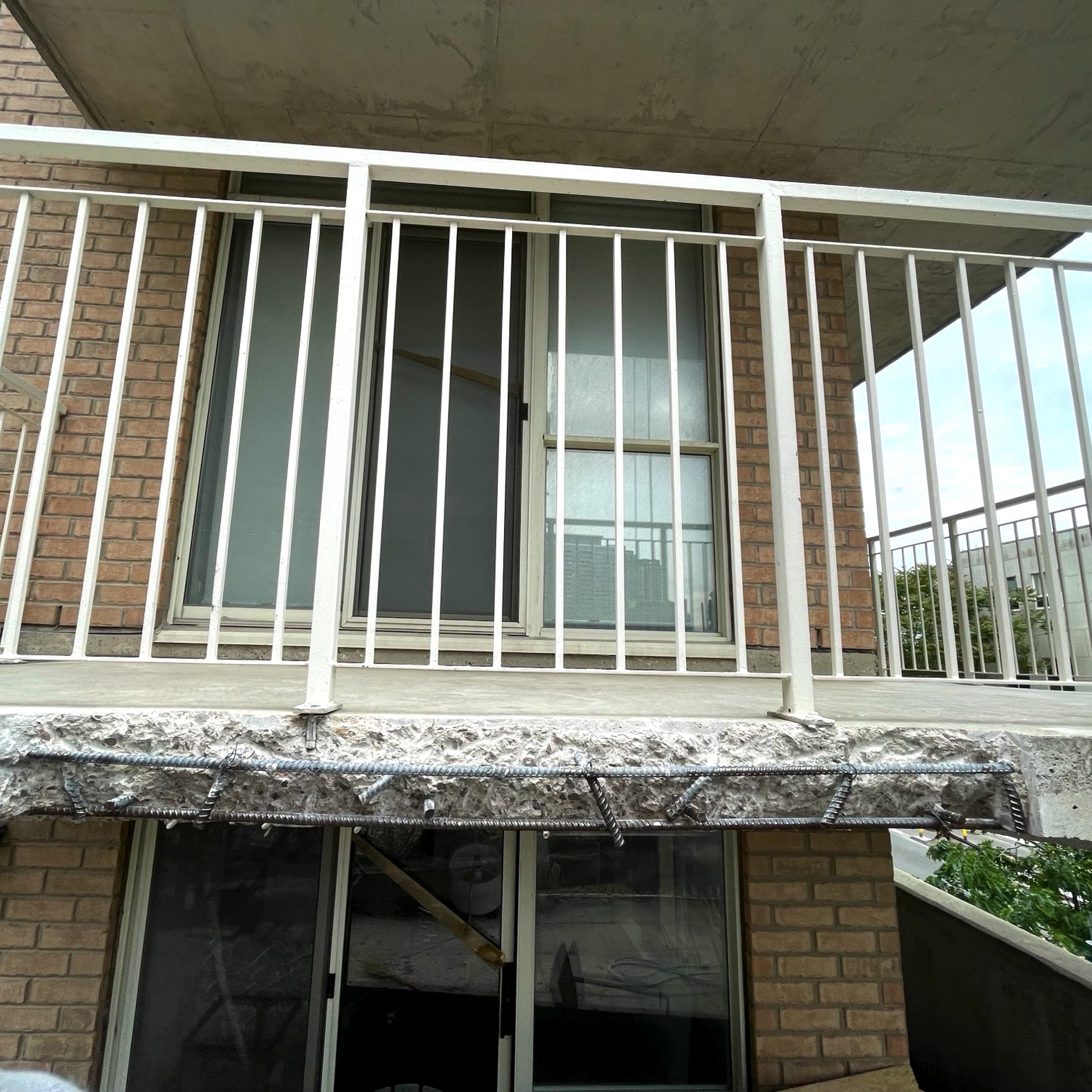 Elarge was retained to undertake balcony repairs at 15 Stafford Street. The balconies at this property exhibited deteriorated concrete and leakage through cracks. The balconies are constructed of conventionally reinforced cast-in-place concrete and enclosed with a glass and aluminum railing system surface-mounted at the slab edge.